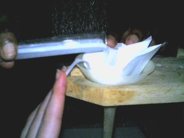 On verse la solution obtenue dans le papier filtre pour récupérer le précipité blanc.